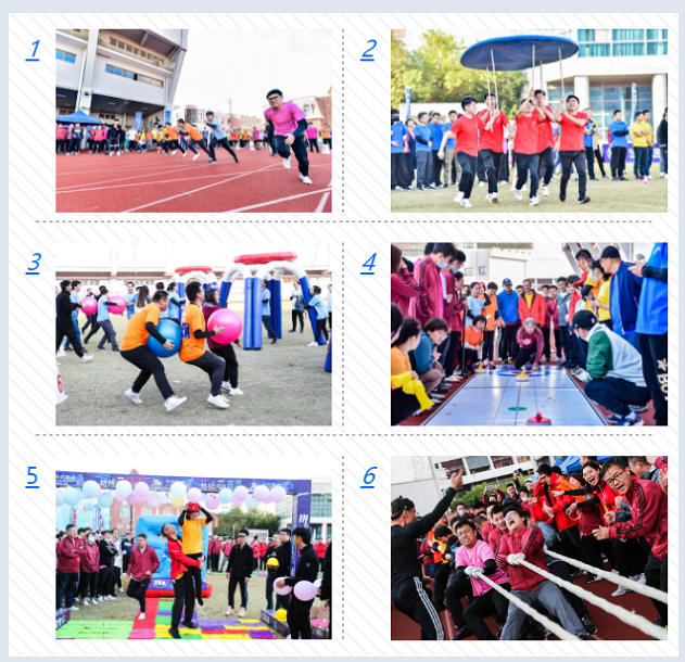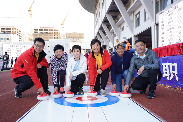 本屆運(yùn)動會共設(shè)有六大比賽項目,分別為華虹速度(100米跑步),頂立“芯”天地(5人撐桿頂盤跑),同“芯”同行(5人聯(lián)合運(yùn)球投籃),一片冰“芯”(旱地冰壺),砥礪前行(8人大型組合接力)及眾志成“芯”(多股拔河),各隊隊員們凝心聚力、團(tuán)結(jié)一心、奮發(fā)拼搏,賽出風(fēng)格,賽出水平。