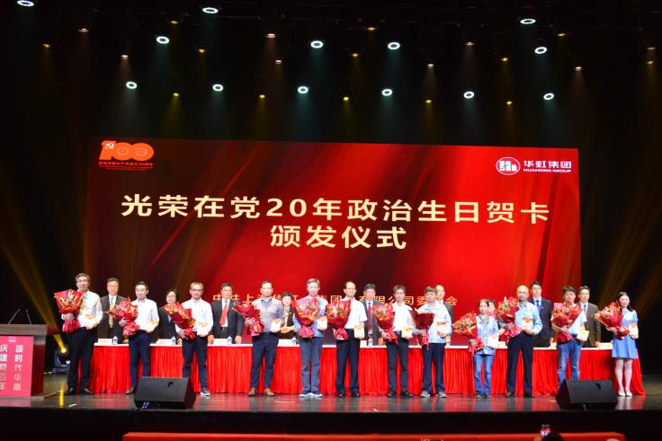 6月20日下午,華虹集團在上海商城劇院隆重舉行慶祝中國共產(chǎn)黨成立100周年表彰大會暨職工文藝匯演,回顧黨的百年風(fēng)華,頌揚黨的卓越功勛,表彰集團“兩優(yōu)一先”及黨建主題活動優(yōu)勝項目,發(fā)布集團“十佳黨建品牌”、頒發(fā)“光榮在黨50年”紀念章及“光榮在黨20年”政治生日賀卡,重溫入黨誓詞。集團黨委書記、董事長張素心出席活動并講話,黨委副書記、總裁王靖等集團黨政領(lǐng)導(dǎo)班子成員,退休老領(lǐng)導(dǎo)代表,各子公司黨政領(lǐng)導(dǎo)班子成員,黨員代表和職工代表等700余人參加活動。上海市國資委黨委委員、副主任葉勁松應(yīng)邀出席。